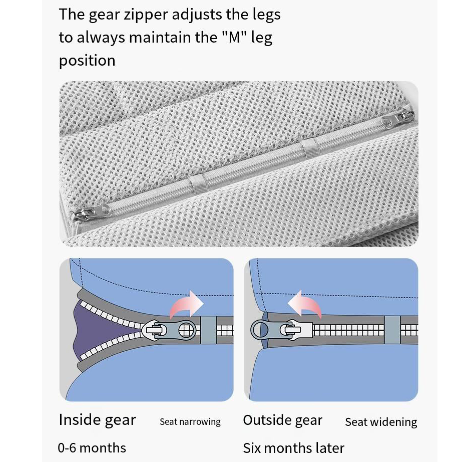 The adjustable features fully meet the needs of both parents and babies: the shoulder straps are equipped with sturdy buckles and extended webbing. Whether you have a petite figure or broad shoulders, you can accurately adjust the straps to a length that fits your neck and shoulders, evenly distributing your baby’s weight to avoid soreness in the shoulders and back. The seat width supports multi-level adjustment—from 3-month-old newborns to 18-month-old toddlers, you only need to slide the buckle or fasten it to different levels to fit your baby’s body shape. It always keeps your baby’s legs in a natural “M” shape, protecting the development of their hip joints.