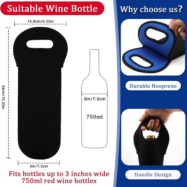 Neoprene Wine Tote Insulated Bag Single Bottle Wine Carrier Built Wine Bottle Holder for Travel