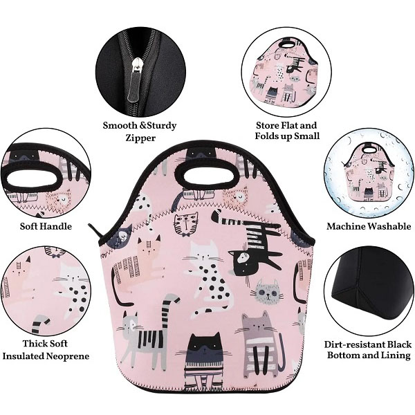 Custom Neoprene Lunch Bag for Kids Insulated Lunch Box Tote Bag